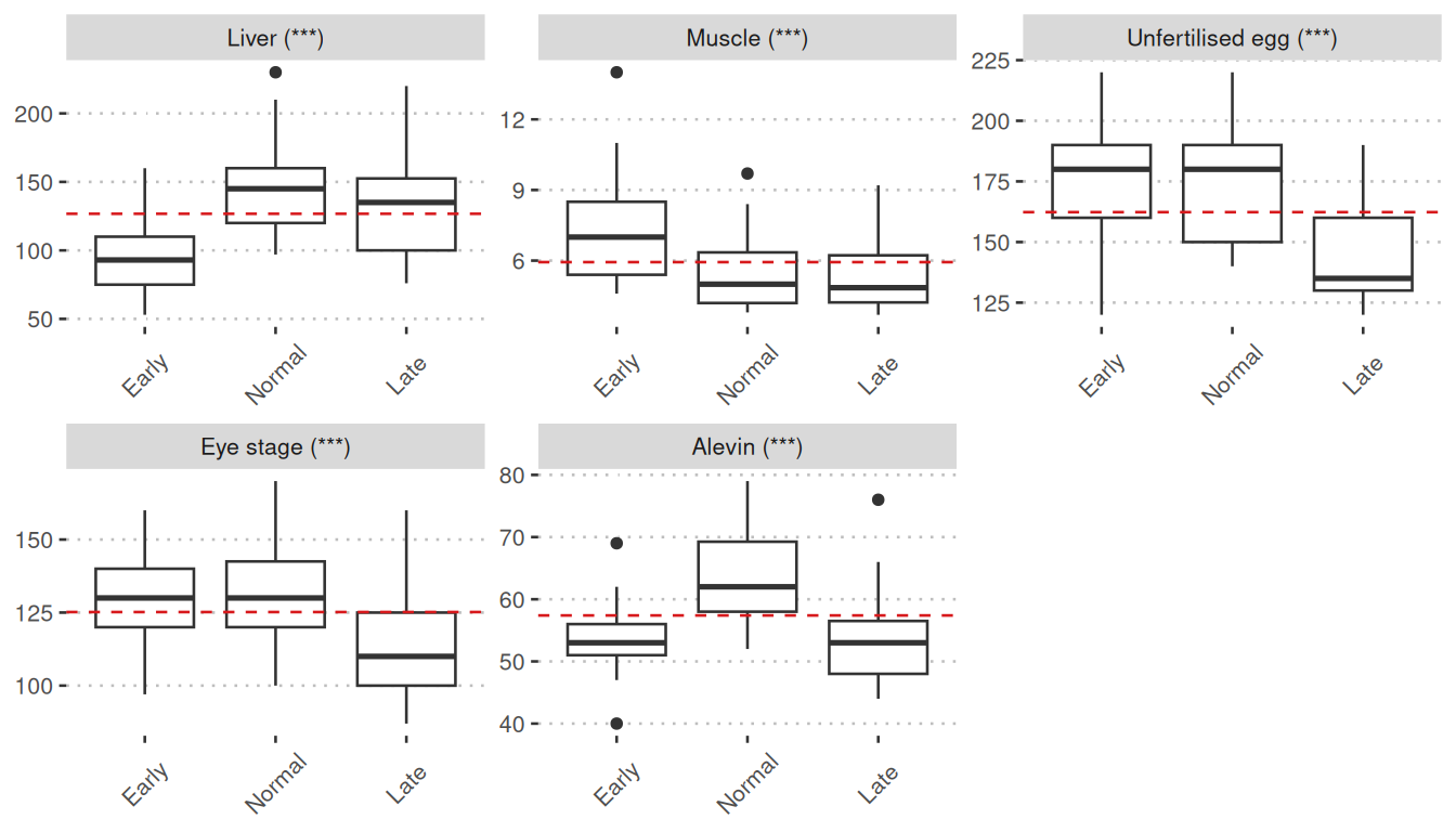 This page presents the findings from our analysis of spawning/offspring samples during the freshwater period, focusing on three sampling points.