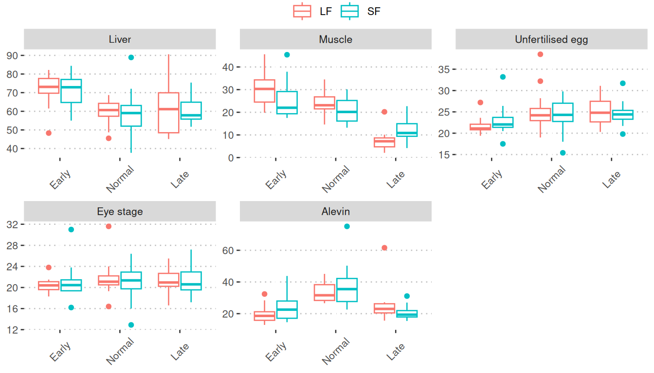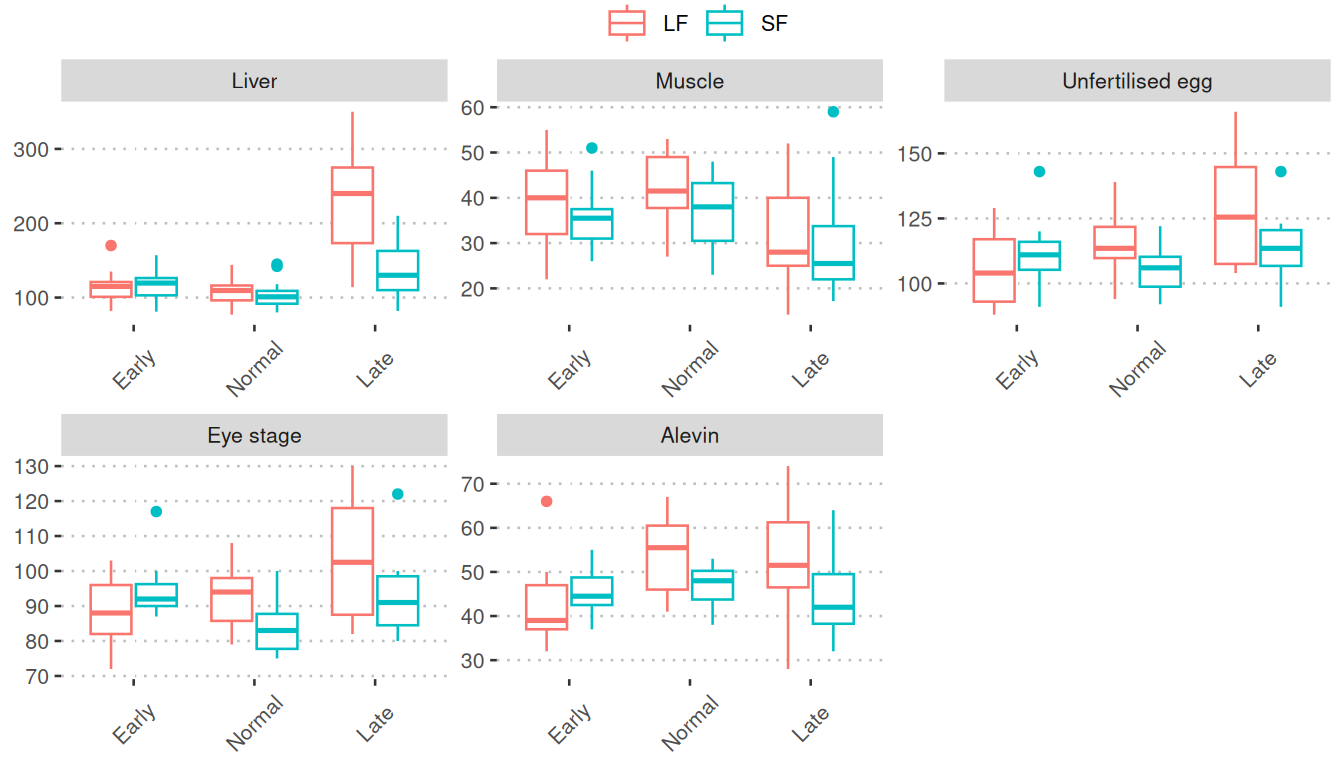 7. Boxplots of the phase 2 samples (spawning/offspring)
