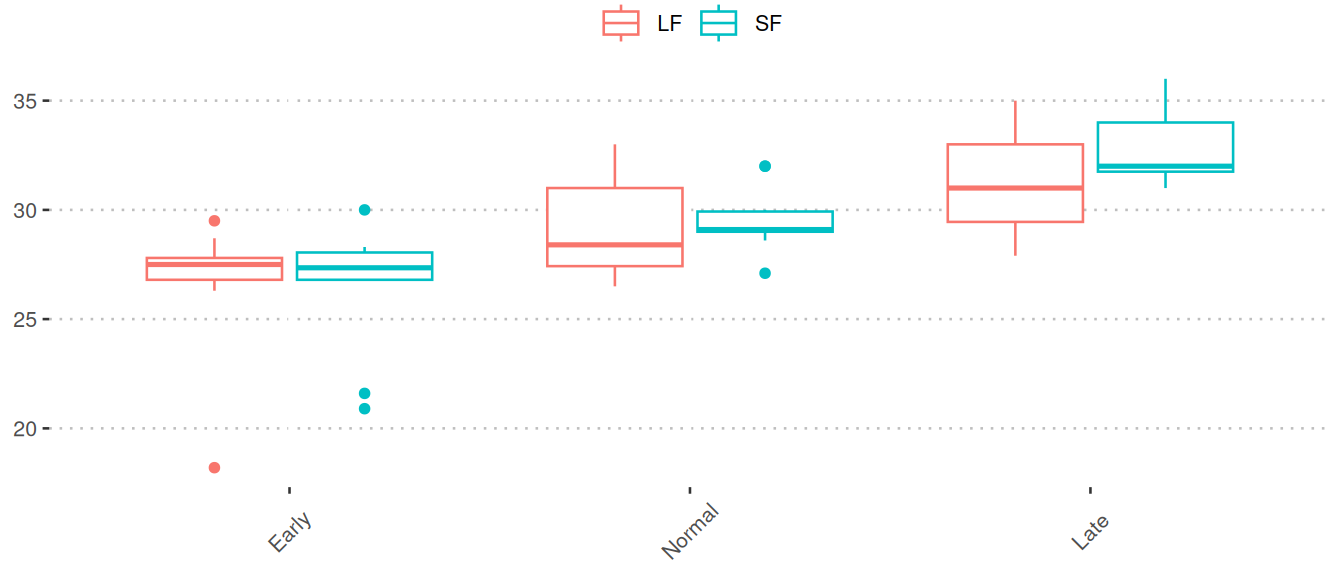 3. Boxplots of the phase 1 + spawning samples